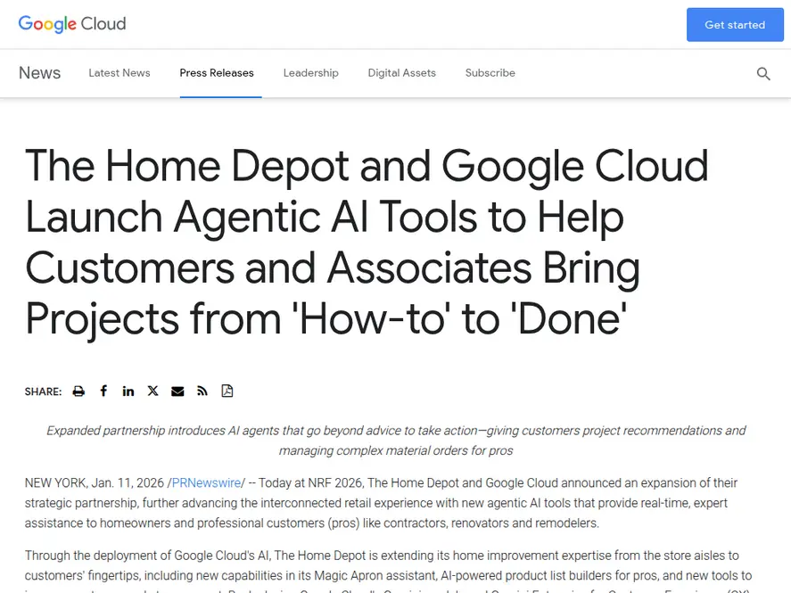 The Home Depot and Google Cloud have expanded their strategic partnership to roll out agentic AI apps designed to move beyond product recommendations and actually help customers and associates complete home improvement projects. Announced at NRF 2026, the initiative centers on Google Cloud Gemini models and Gemini Enterprise for Customer Experience (CX), aiming to deliver a more personalized, contextual experience across digital channels, physical stores, and job sites. For additional technical context on the model family that enables low latency, real-time experiences, see Google's Gemini 3 Flash model performance capabilities.